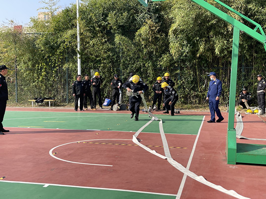 本次安保練兵大比武活動共有4家參賽隊伍,分別進行了隊列展示、室內(nèi)消防栓講解、體能比拼、疏散救援操等比賽。