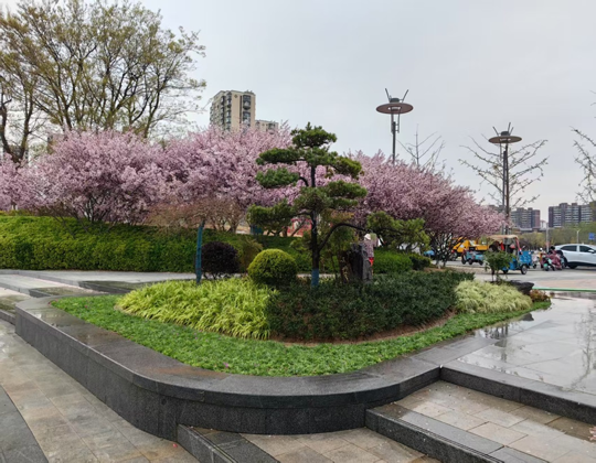 這塊占地面積僅38平方米的三角地塊,通過太湖石的點(diǎn)綴、紅楓與羅漢松的錯(cuò)落布局,輔以時(shí)令草花的季節(jié)性更替,詮釋了微型景觀設(shè)計(jì)中“以小見大”的設(shè)計(jì)手法,在方寸之間營(yíng)造出驚喜的視覺效果,為市民出行游玩注入“幸福因子”。