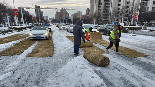 為確保城市主干道及橋梁暢通,建發(fā)公司緊抓夜間作業(yè)窗口,秉持“人歇車不歇”原則,調(diào)配精良設備與人員,對易結冰的橋面及主干道進行高強度清除作業(yè)。作業(yè)人員利用后半夜車流較少的時機,集中操作雪滾車、撒布機等設備,并同步在關鍵路口鋪設防滑墊。截至20日17時,累計投入各類機械16臺、作業(yè)人員320名,撒布融雪劑60噸,有效保障了主要道路的安全通行。