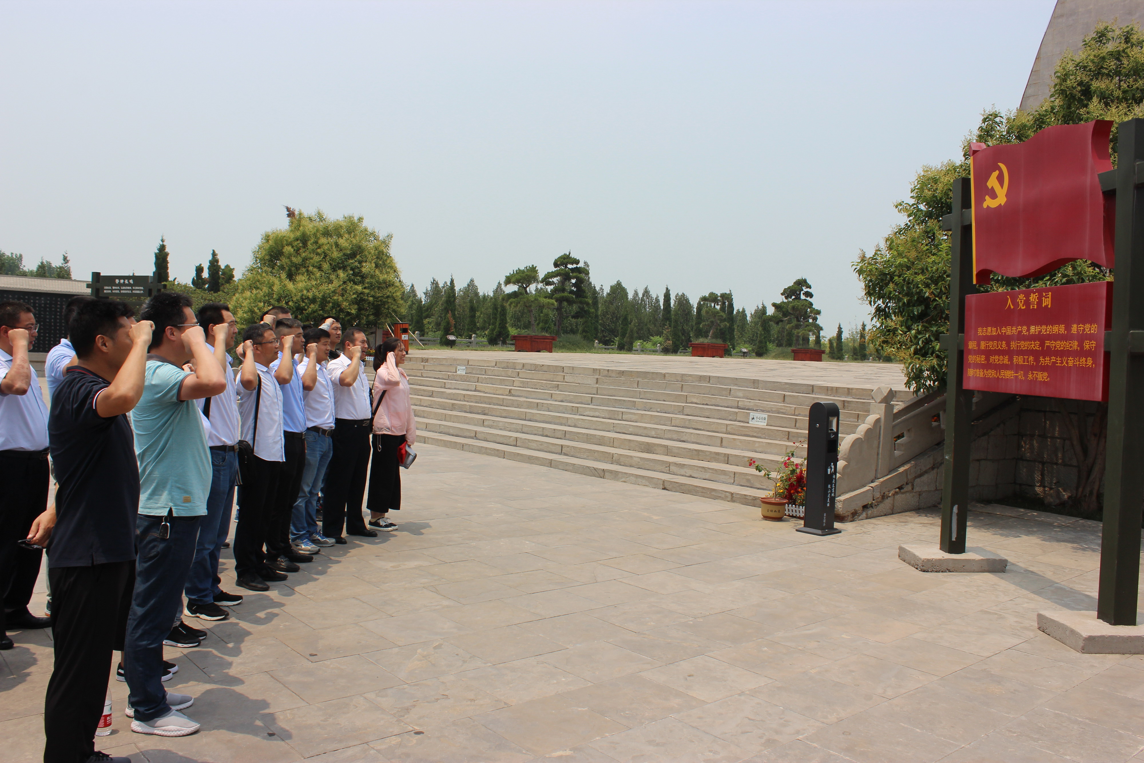 在鐵道游擊隊(duì)紀(jì)念碑前,黨員們面對鮮紅的黨旗,莊嚴(yán)的舉起右手,重溫入黨誓詞。我志愿加入中國共產(chǎn)黨,擁護(hù)黨的綱領(lǐng),遵守黨的章程,履行黨員義務(wù)……隨時準(zhǔn)備為黨和人民犧牲一切,永不叛黨。一聲聲鏗鏘有力的誓言響徹微山湖鐵道游擊隊(duì)紀(jì)念園,表達(dá)了黨員們對黨的無限忠誠,對鐵道游擊隊(duì)英雄們的崇高敬意。